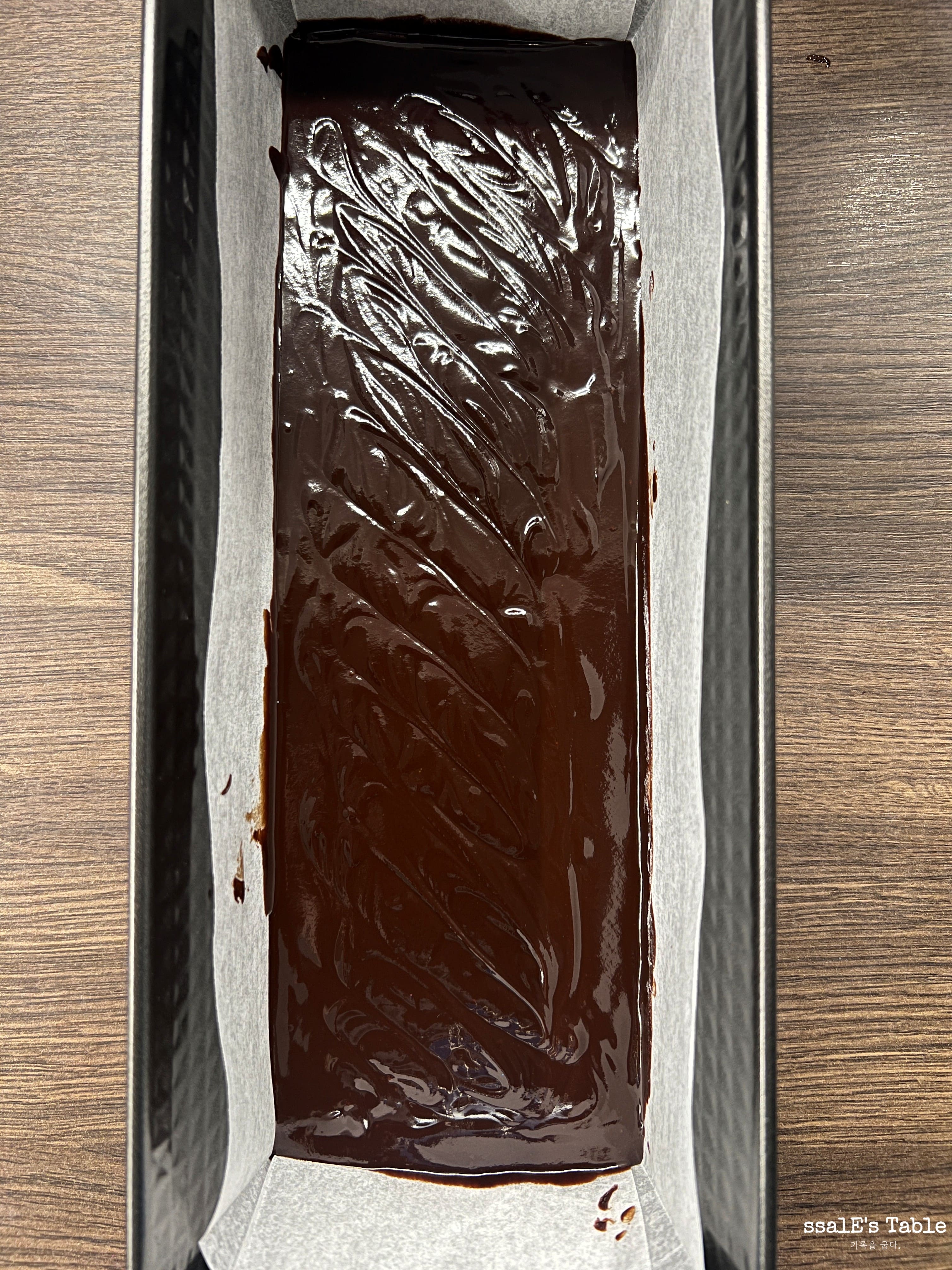 준비하신 사각 틀에 종이 호일을 꼼꼼하게 깔아주세요. 파베 초콜릿은 점성이 강해 호일 없이는 나중에 떼어내기가 무척 힘들답니다. 코딩된 종이로 된 파베 전용 틀도 판매가 됩니다. 전용 틀을 이용하시면 훨씬 편하게 만들 수 있어요.